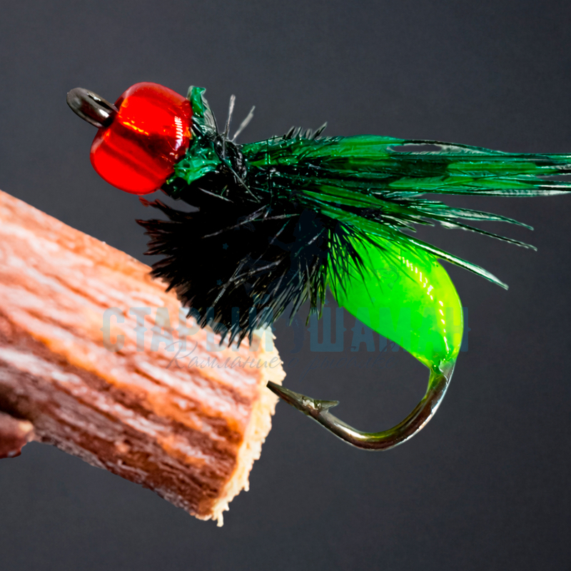 Размеры крючка с мухой: 15мм длина, 5,5мм (жало - цевье)