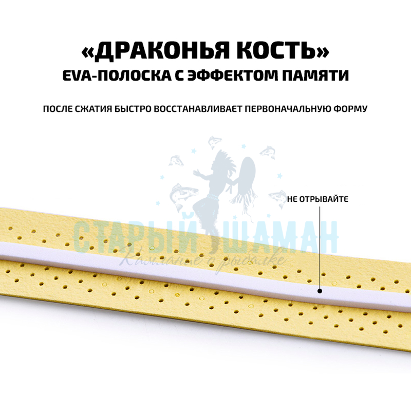 На обратной стороне есть «Драконья кость» — EVA-полоска по всей длине с эффектом памяти для более удобного захвата. Также лента быстро высыхает, поэтому, если вы её намочили, просто промокните это место сухой салфеткой — и она снова станет сухой.